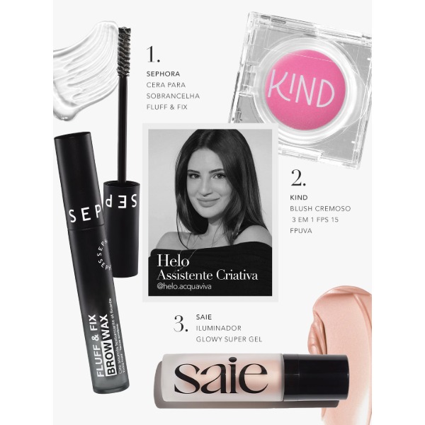 Tudo começa na preparação de pele. Sempre comece com a pele fresca, sem nenhum pó, para que os produtos cremosos e líquidos deslizem com facilidade. Um truque extra, que eu particularmente amo, é aplicar iluminador líquido antes do blush, isso deixa uma pele mais luminosa que potencializa o efeito glow.