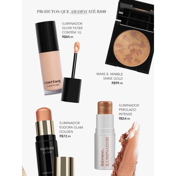Se você adora se maquiar, mas também gosta de economizar, esta seleção é pra você. Eu e minha equipe reunimos nossos produtos de maquiagem favoritos por até R$ 99, que entregam qualidade, boa performance e um acabamento impecável.